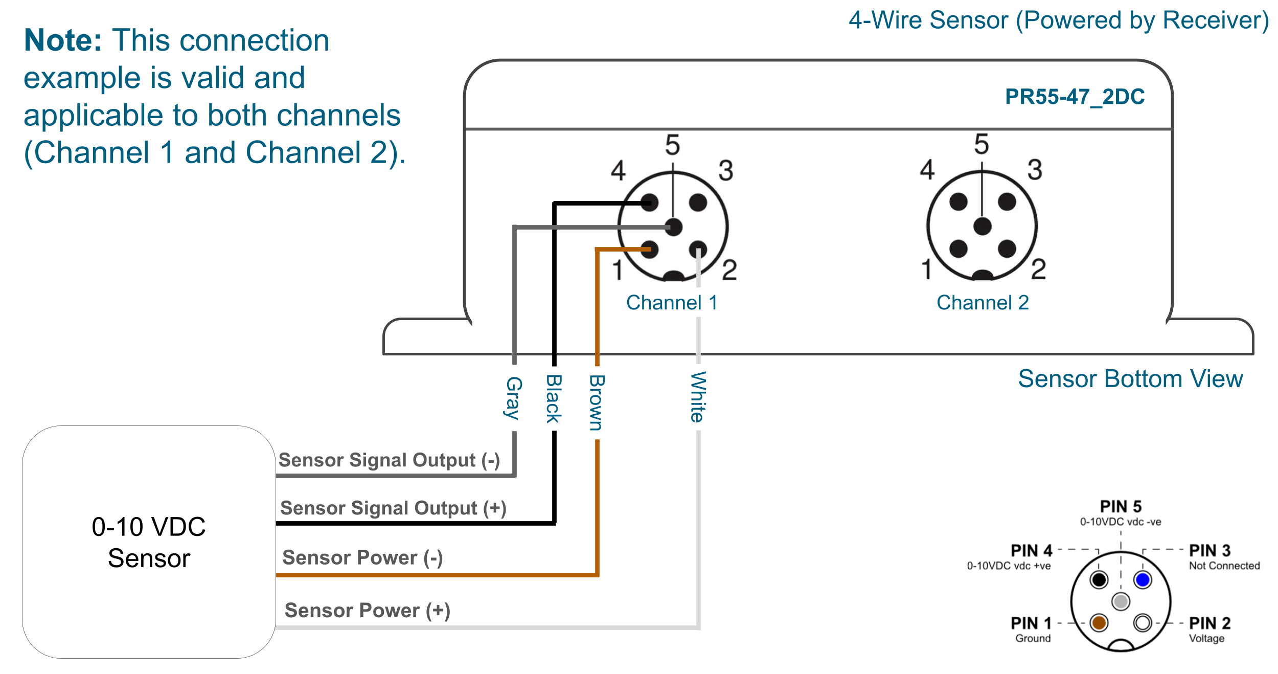 This 2 Channel Industrial IoT Wireless 0-10V Receiver has on board 16V buck boost power supply, thus eliminates requirement of external power supply. This power supply is used to power up the external 0-10V sensor. This device can be used with any 0-10V sensor/device into a wireless nodes.