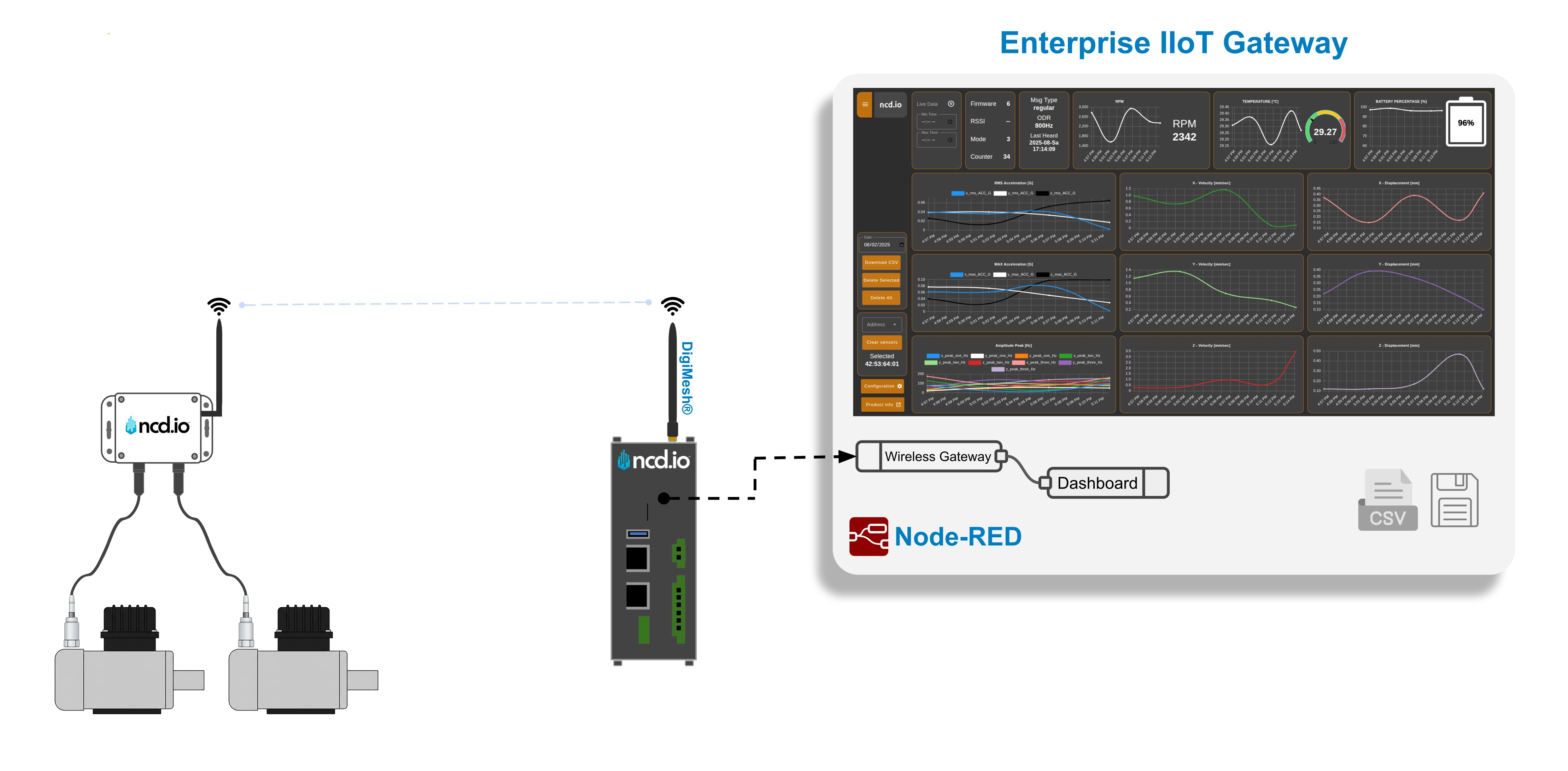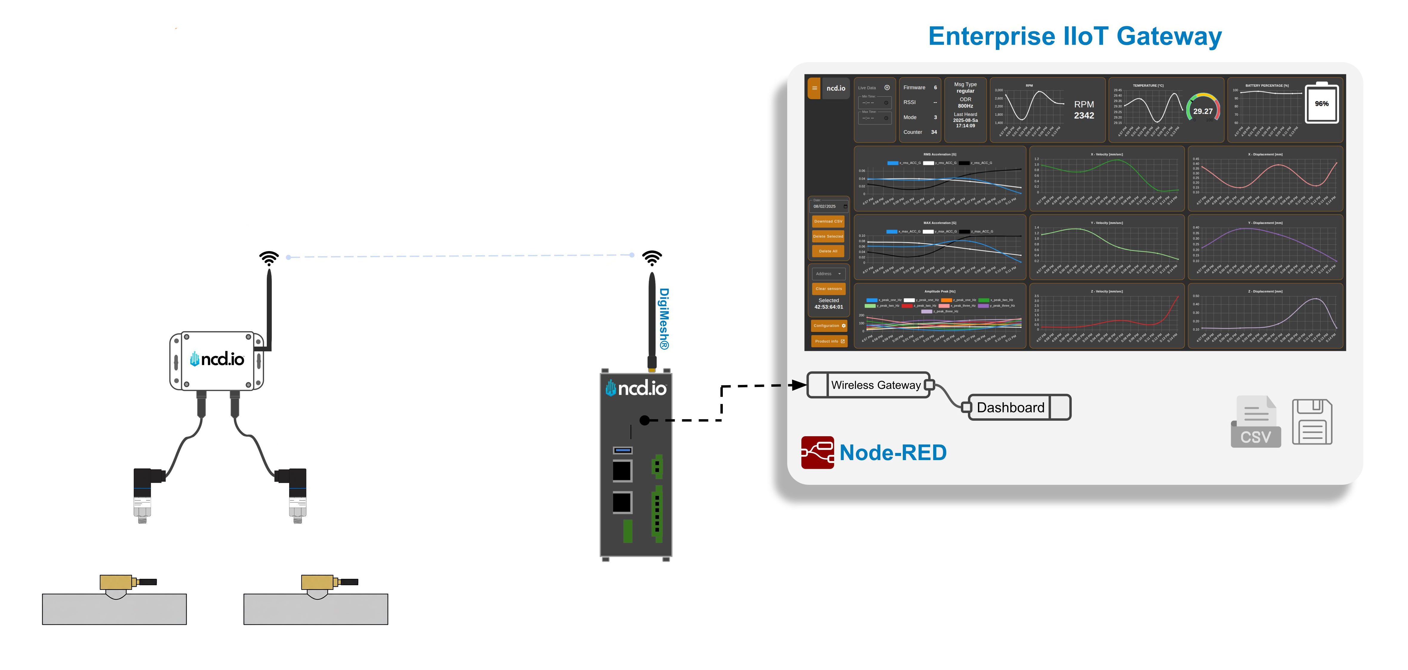 Set the NCD bridge to sample every 5–15 s, with change-based transmit for faster alarms when pressure moves. If the site is cold or has frequent reporting, consider external 12/24 VDC power instead of AA cells. Your data will be automatically transmitted wirelessly to your gateway (you need a DigiMesh enable one like the NCD Atrium IIoT Gateway) for post processing.