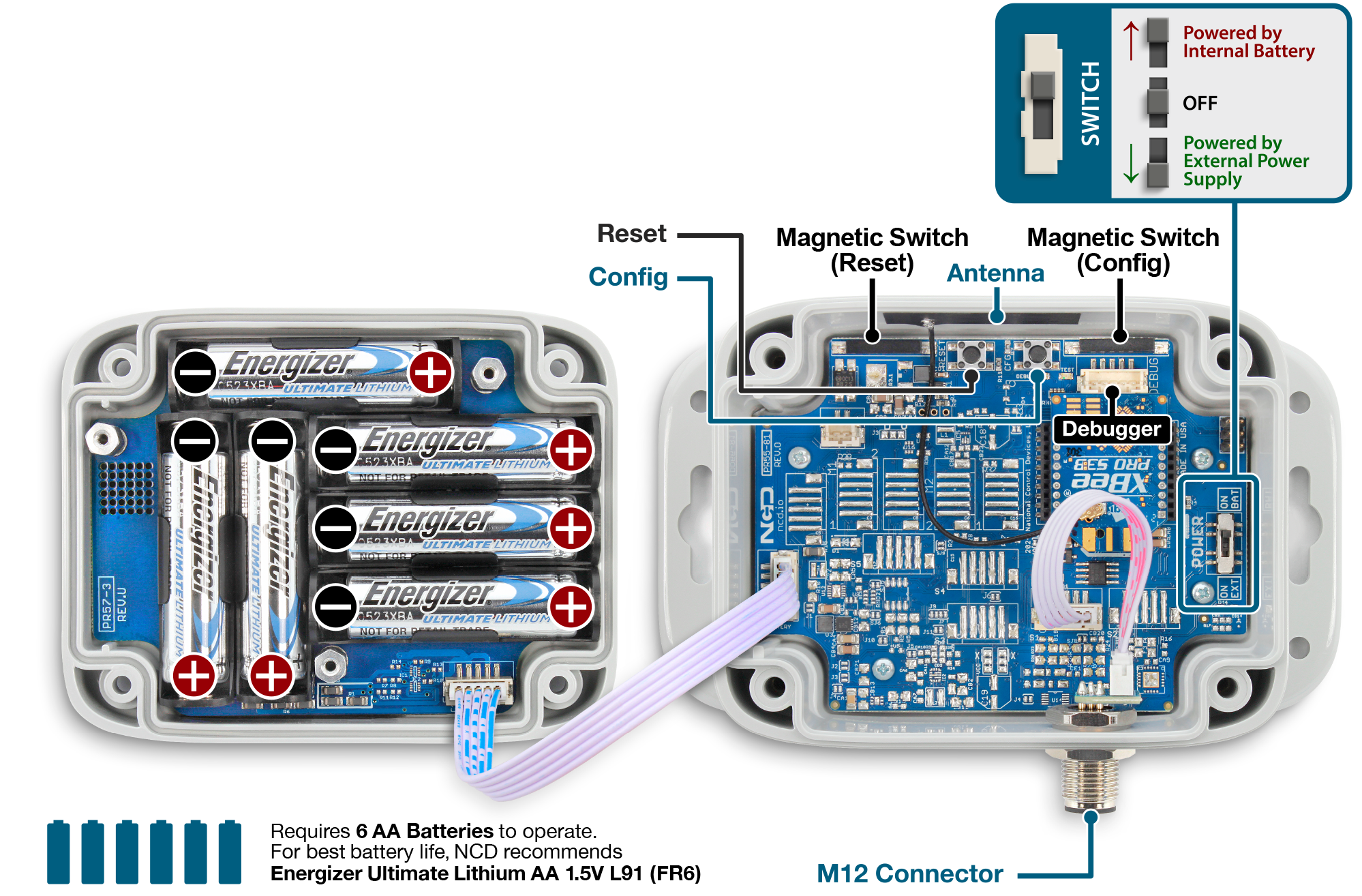 This sensor is powered by AA batteries (NCD recommends Energizer L91 batteries)