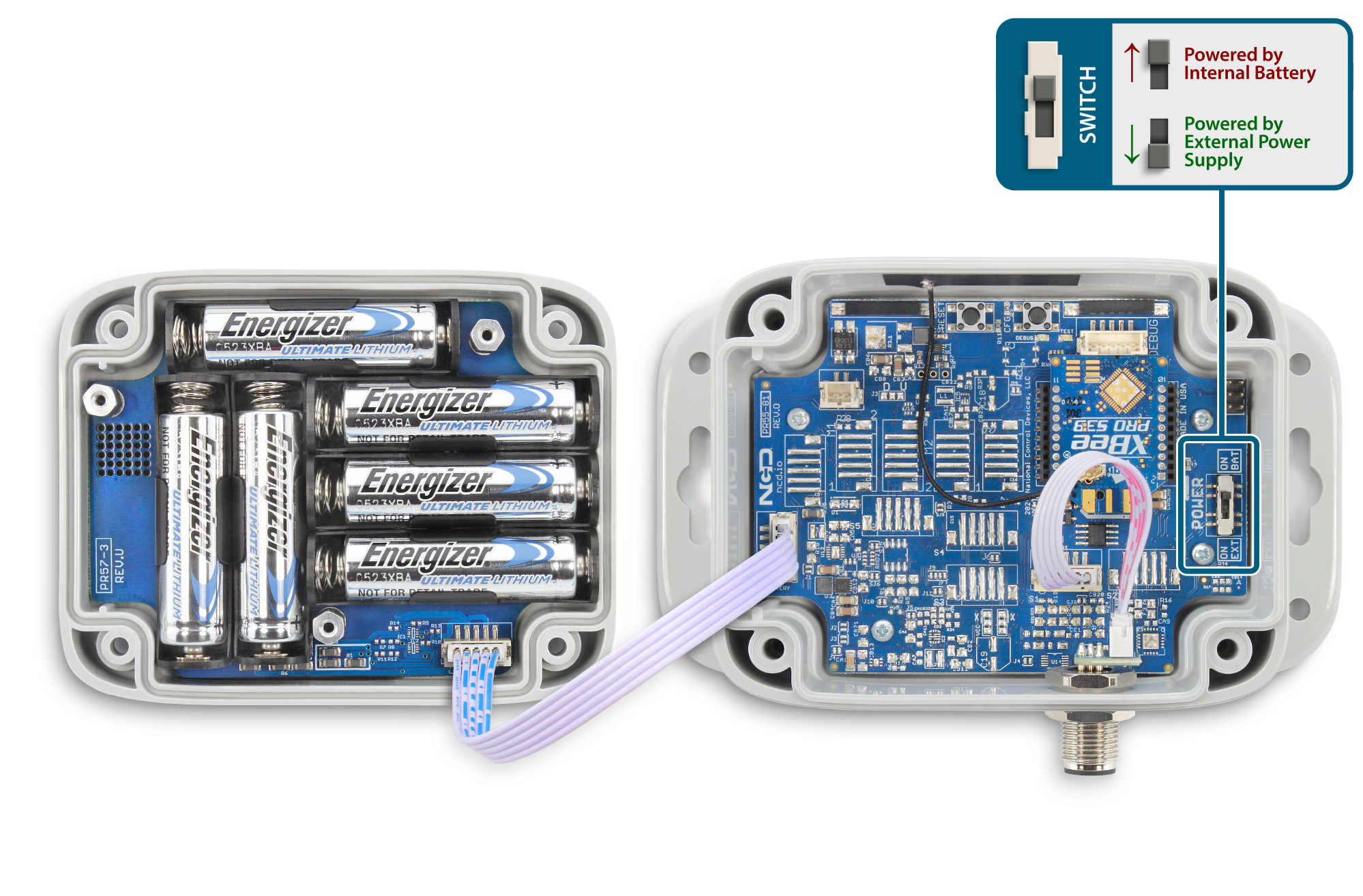 The Battery Power position will use the onboard batteries to power the sensor and transmit data.