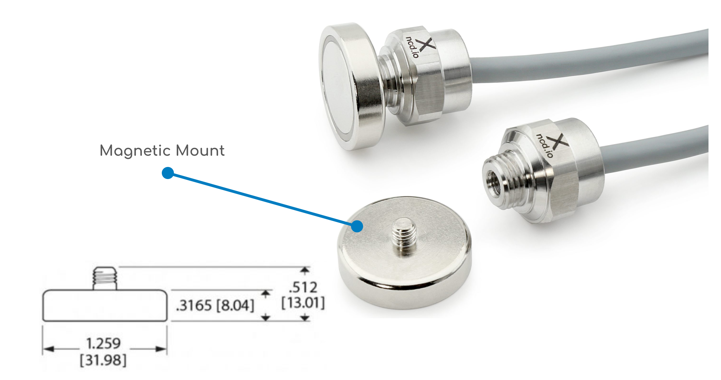 The NCD Vibration Sensor Gen4, in both standalone and external probe versions, comes equipped with a flat magnetic mount.