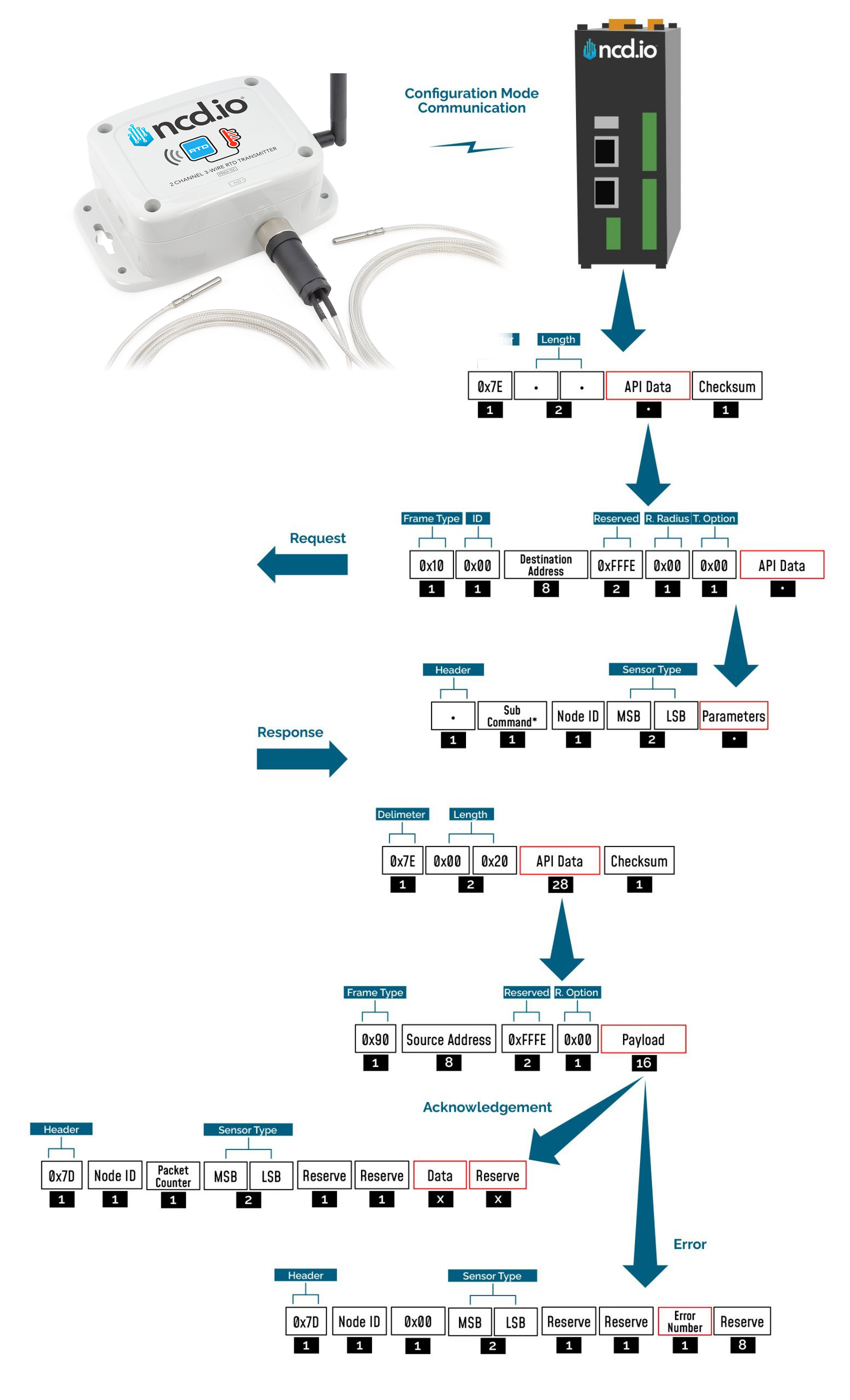 | 6 | Set Retries | 0XF7 | 0x06 | Retries | 0x0A | Sets the number of Retries after unsuccessful transmission for the Sensor Radio |
