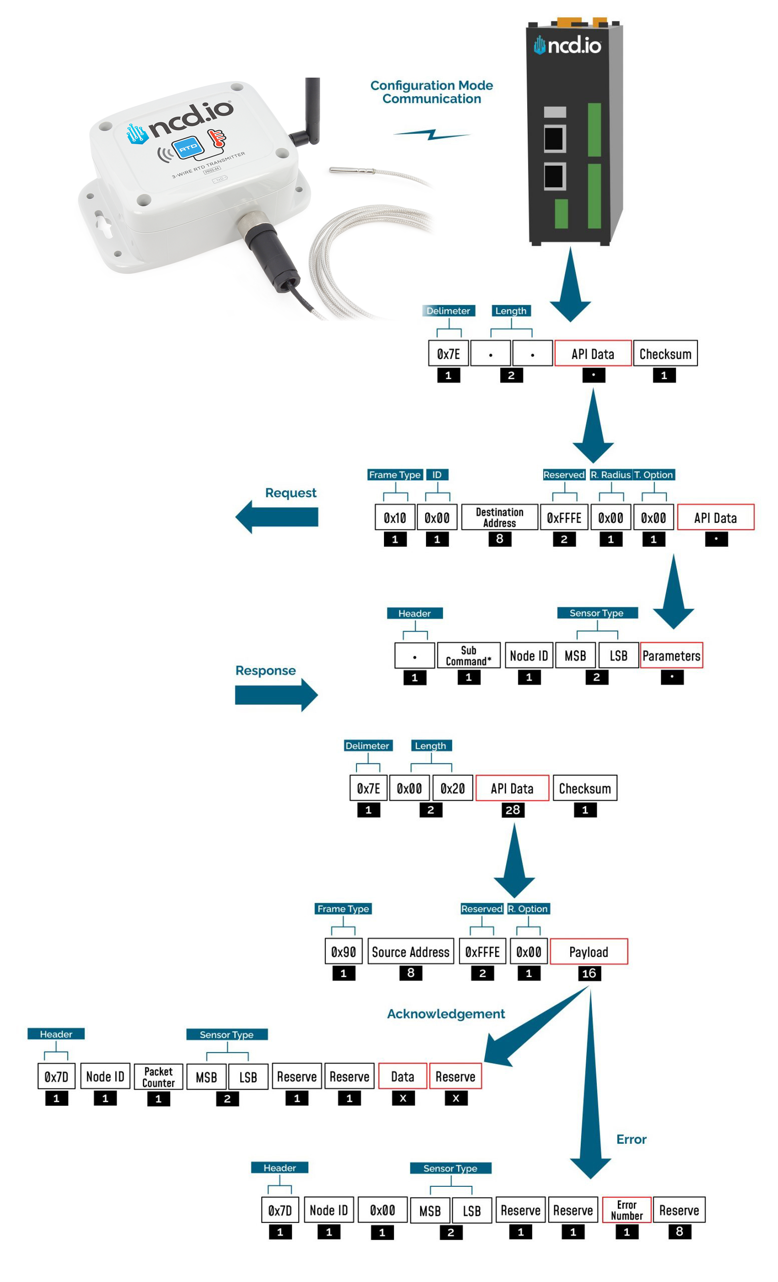 | 6 | Set Retries | 0XF7 | 0x06 | Retries | 0x0A | Sets the number of Retries after unsuccessful transmission for the Sensor Radio |