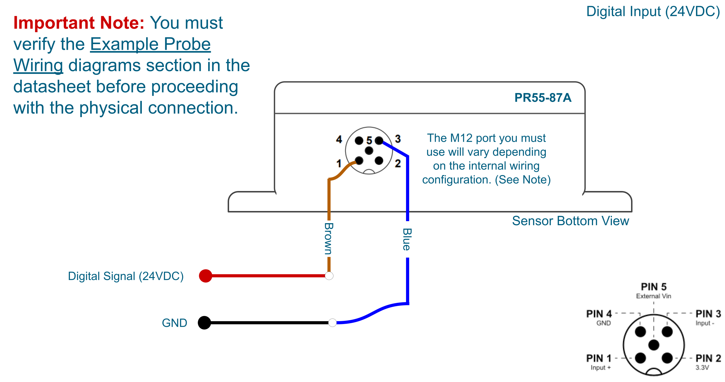 Depending on which probe configuration you chose you would gave to reroute the internal cabling between the M12 connector and the respective connector on the PCB. The images below show 4 example configurations.