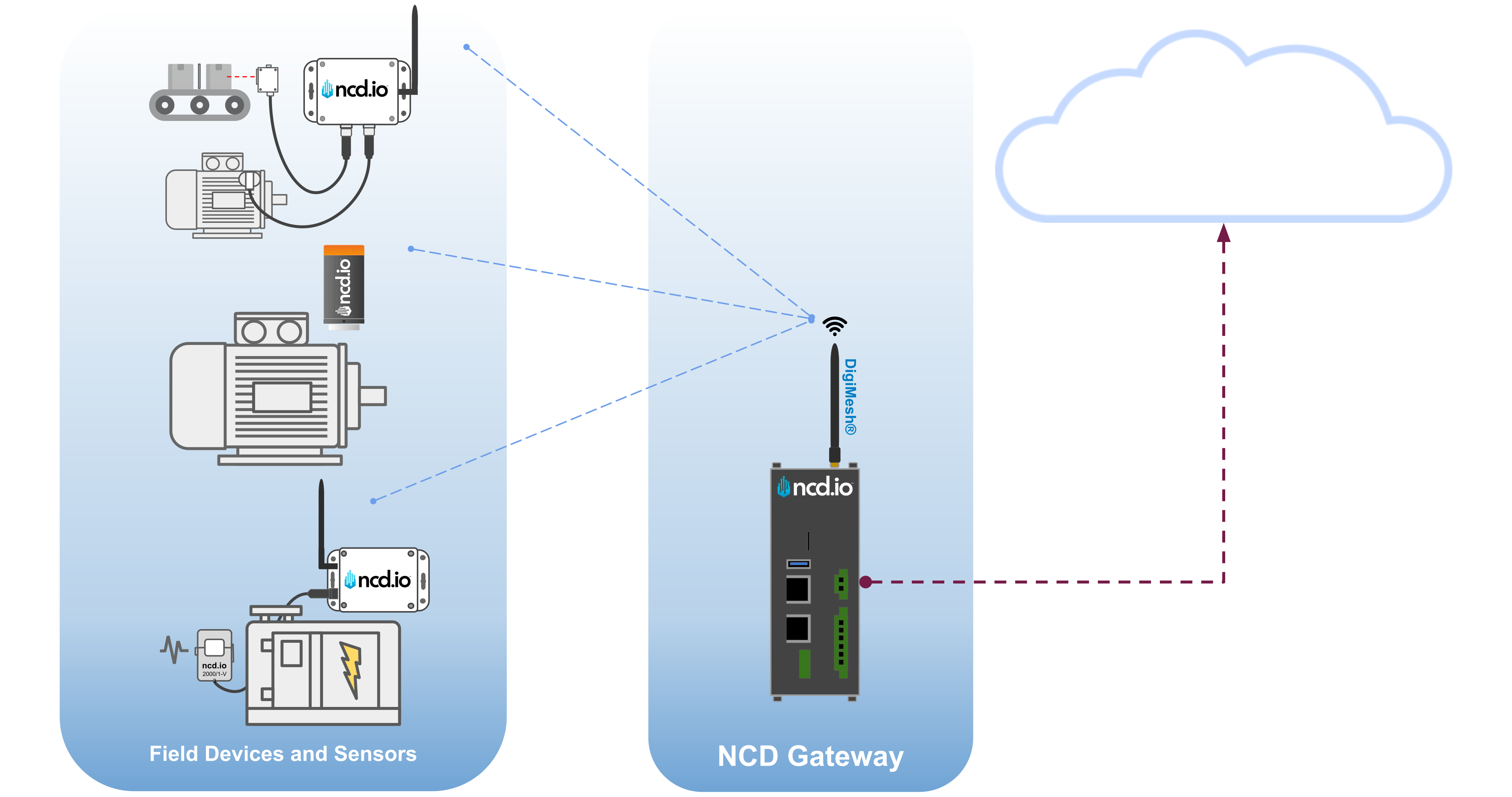 It is designed to bridge low-power wireless NCD sensors (using the robust DigiMesh protocol) with local networks or major cloud platforms like AWS, Microsoft Azure, or custom SCADA systems.